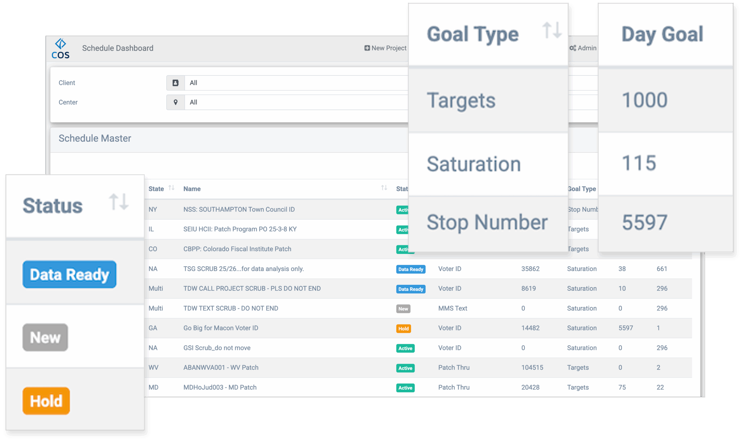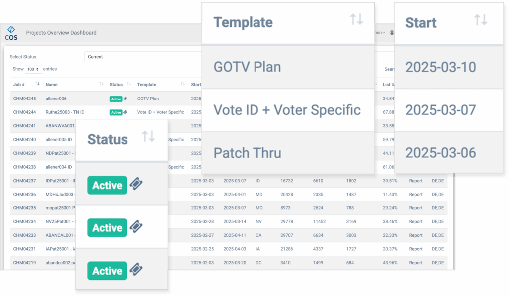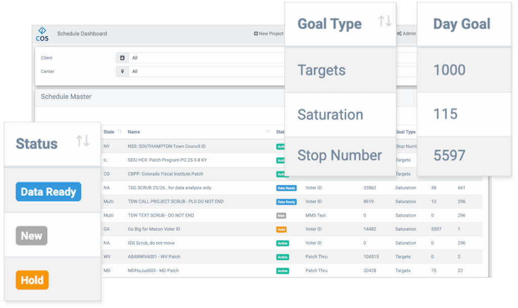 The nation’s premier political groups and grassroots organizations partner with COS to manage thousands of outreach programs, featuring hundreds of thousands of calls and texts every year.